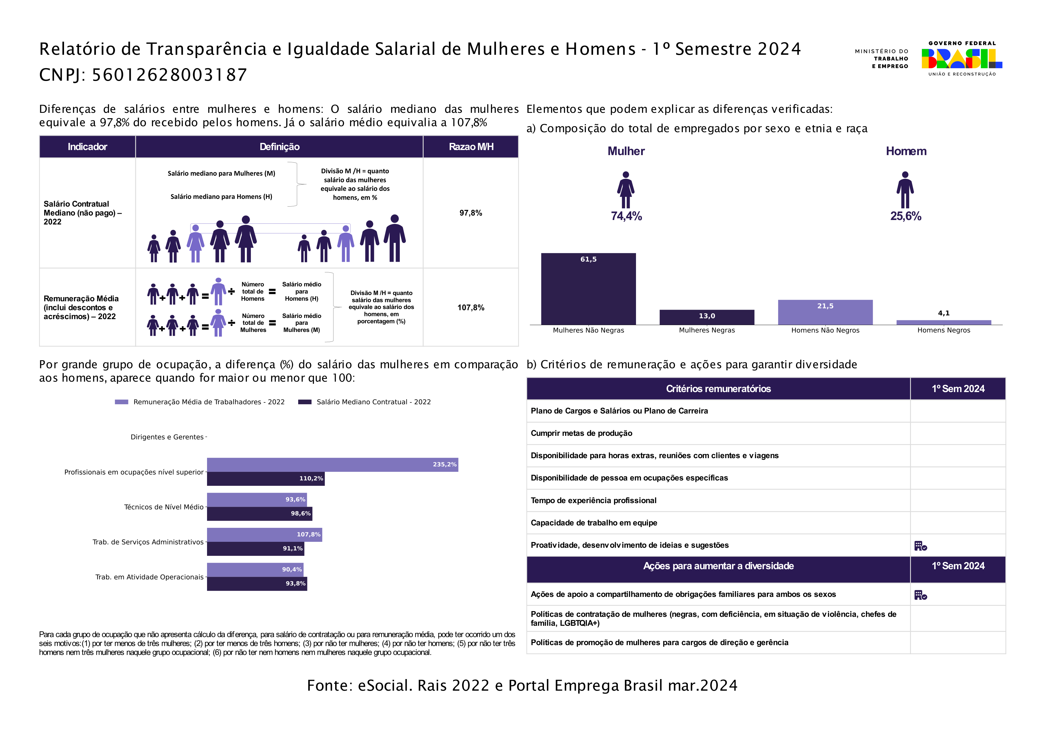 Relatório de Transparência e Igualdade Salarial de Mulheres e Homens - 1º Semestre 2024
